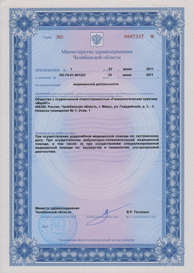Начало лицензированной деятельности медицинского центра «МедИС» датируется 9 августа 2007г.