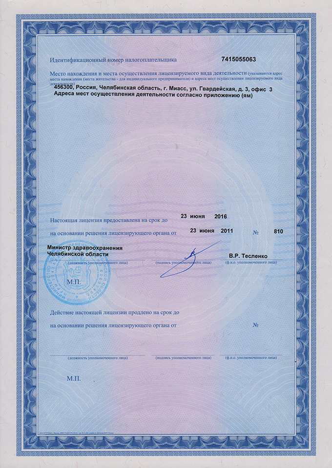 С 2010г. медицинский центр открыл собственный офис по адресу ул. Гвардейская д.3 оф.3.